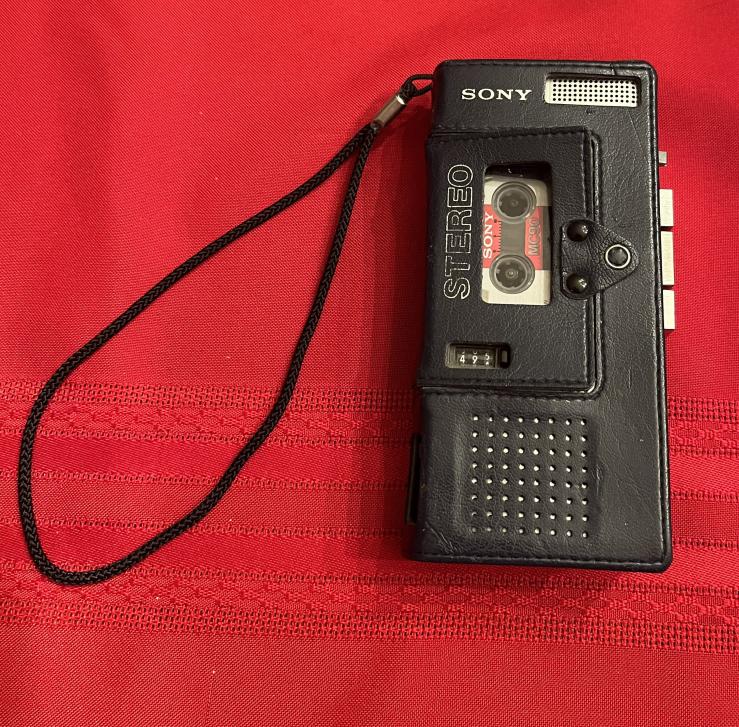 The above item is in good working and cosmetic condition., Price is $49.00 firm plus shipping cost. It also have auto-reverse. Comes with a Sony micro-cassette tape; has two speeds and two EQ settings and auto reverse. Sony mode M-1000. It has 2 Internal electret microphones for stereo pickup and a protective leather case.