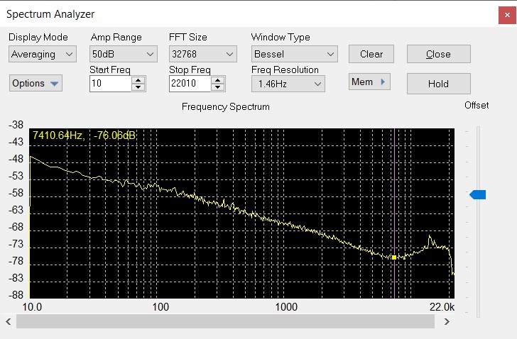 D.J. Bohn, who is a member of this forum asked if we could provide a compensator to produce maximally flat response over the audio spectrum (20 Hz to 20 kHz) for his Grado3 MI phono cartridge. He created a 48 kHz sampled file at 16 bit resolution through an RIAA preamp made by P.S. Audio which has an input termination resistance of 47 kOhms. The source recording was a test record made by Hi-Fi news (Analogue Test LP). He used Pink Noise at -20 dB both left and right channels. I found a bit of a kink in his file near the top octave of the spectrum and corrected it using the Paragraphic EQ. Here are some screen shots showing the raw file and the corrected file as well as the preset. Note that the top graph is the response of the raw file and the lower graph is of the compensated file. (note: that small residual spectral spike around 16 or so kHz I suspect is the self resonance of the cartridge coil inductance and its distributed capacitance).